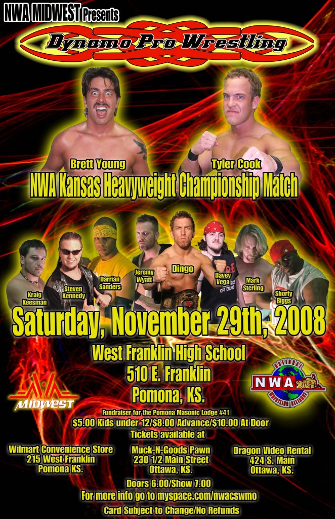 Kansas fans we have not forgotten about you! On November the 29th, in Pomona KS the NWA Presents Dynamo Pro Wrestling returns and MWR will be there to cover all the action.