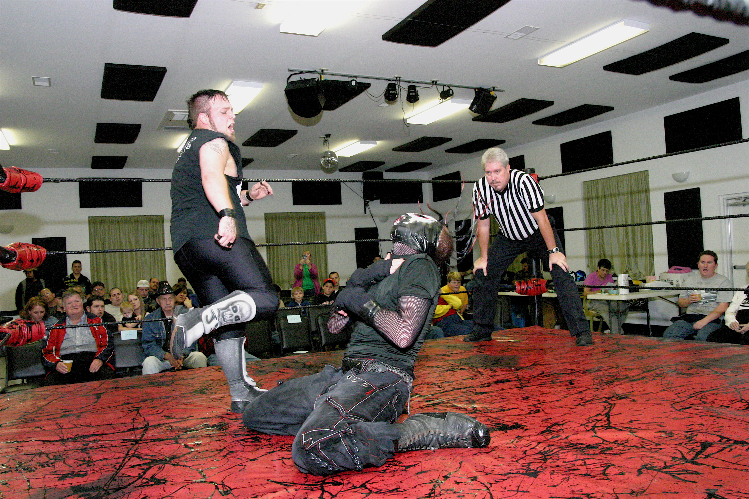 Manson catches Static with a BIG boot.(Photo Credit Michael R Van Hoogstraat)