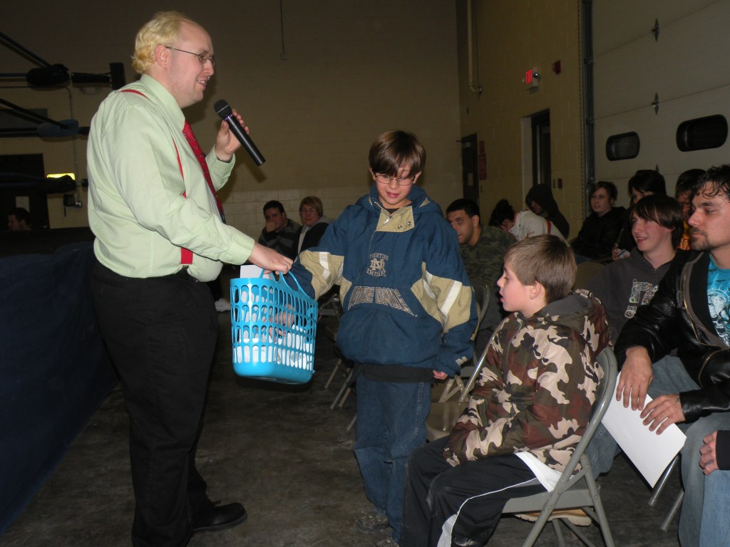On the evening we gave away the very popular MWR T-shirt to one lucky fan. Ring announcer Axel Greece allowed a young PWP fan to pick the name out of the hat. Zakaria Breenan from Belview Nebraska was in the house and took home the exclusive shirt.