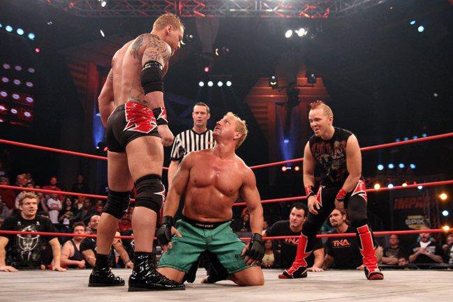 Jeff Jarrett looks up to the powerhouse known as Crimson (Photo Credit TNA Website)