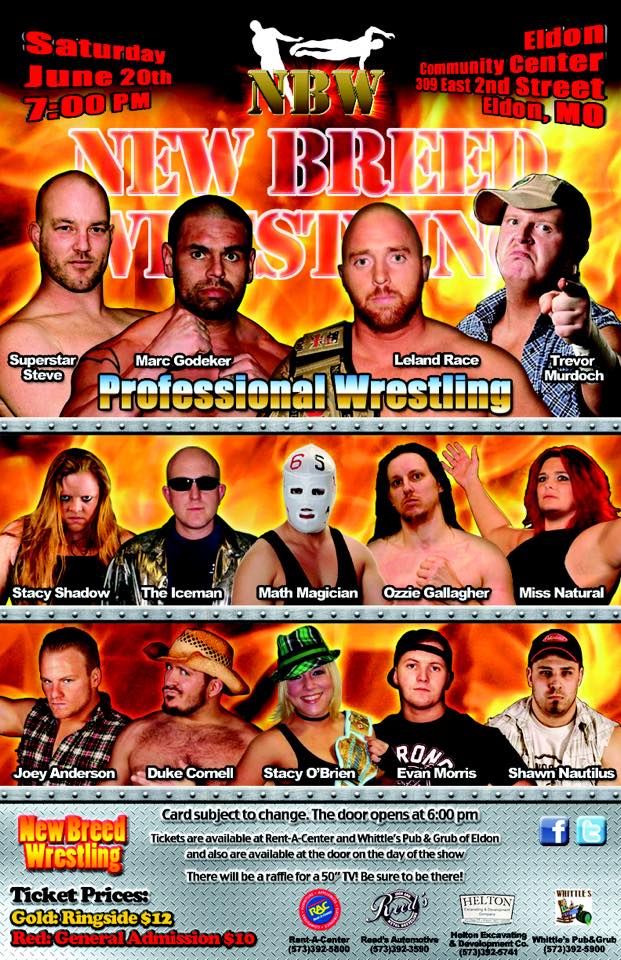 New Breed Wrestling Returns to Eldon, MO this Saturday Leland Race vs. Marc Godeker (No time Limit) Trevor Murdoch
