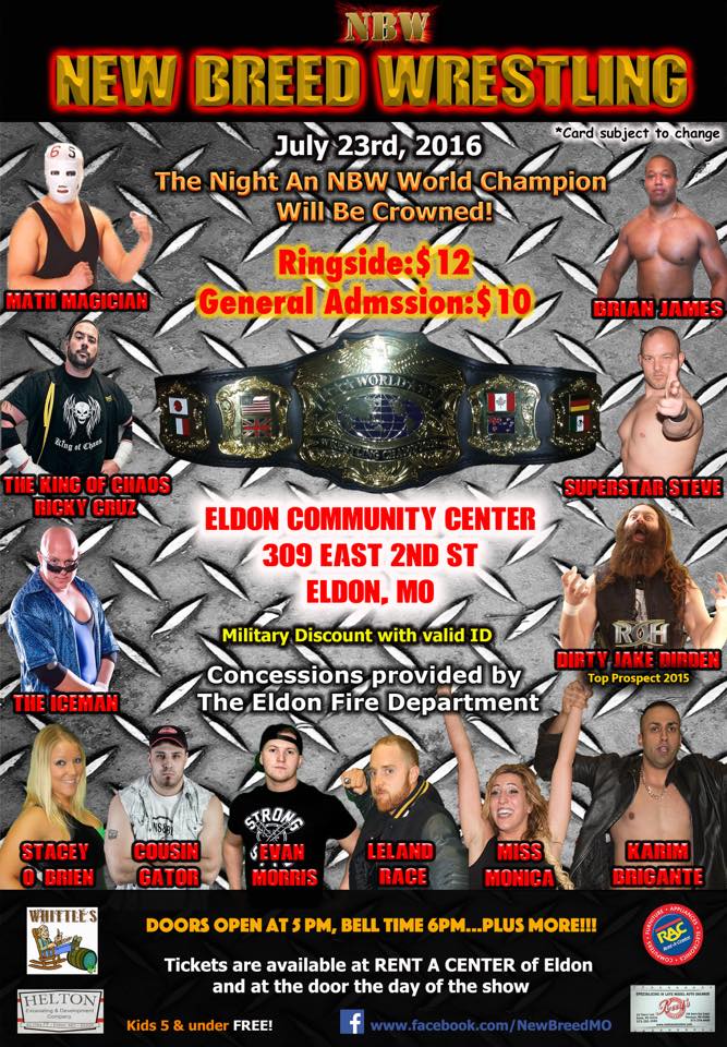 New Breed Wrestling July 16 Sedalia, Mo and July 23 Eldon, Missouri