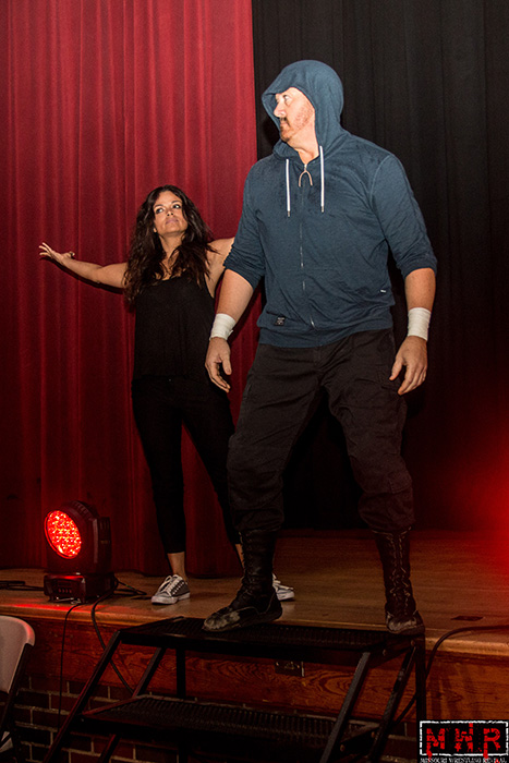 With lightning quick turn arounds, no man kept the upper hand for a prolonged period of time, but with each move you believed the end of the match was within reach. Then a new reservoir of strength would be found and the battle raged on. Lucy managed to find her way into the melee with a couple of cheap shots and a choke on the ropes while the ref was distracted. Fans were on the edge of their seats, until Wyatt and Strider found their way into those seats, then it was a pushback by referees and security to keep the fans at bay as the action continued in the seats, in the bleachers and at ringside.