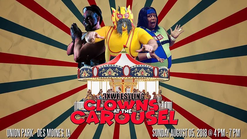 Come join 3XWrestling this Sunday Aug.5th for a Free Family Friendly Fun Event! Clowns At The Carousel