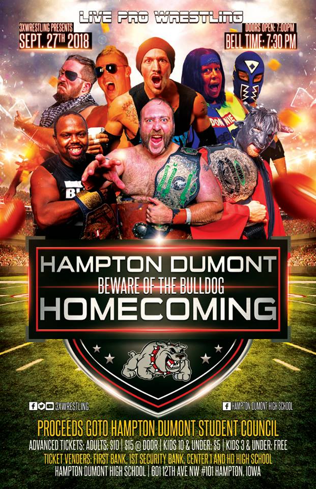 3XW Hampton Dumont Homecoming – Beware of the Bulldog – Thursday September 27, 2018 – Hampton Dumont High School, Hampton, IA