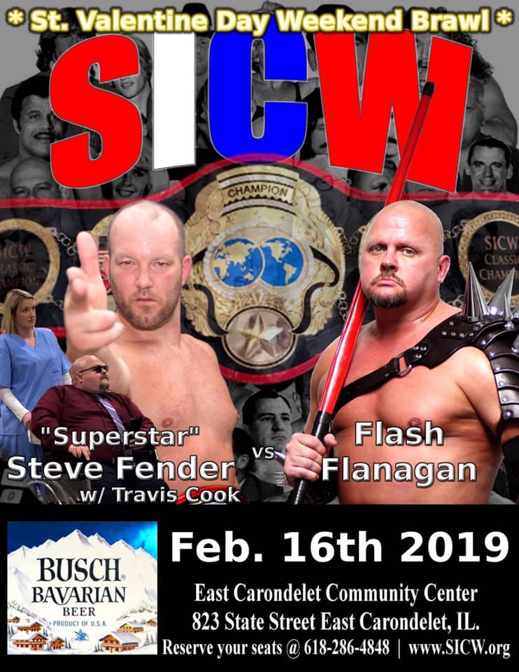 SICW St. Valentine Day Weekend Brawl Feb 16th Steve Fender w/ Travis Cook vs Flash Flanagan
