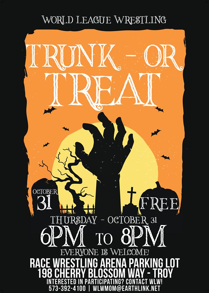 World League Wrestling’ Trunk or Treat Oct 31st Troy, MO 6-8