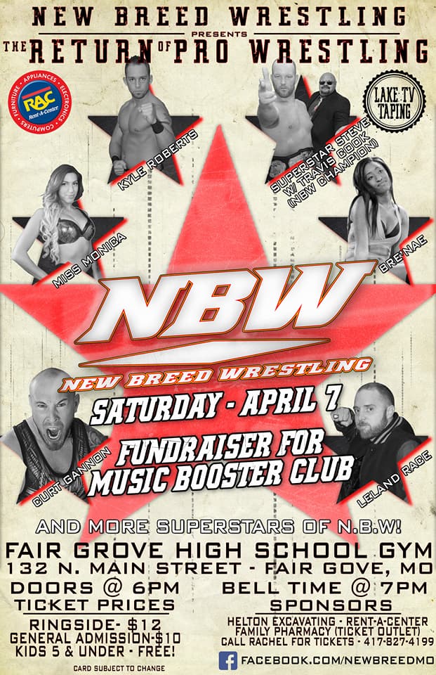 New Breed Wrestling’s next show will be in Eldon, MO on October 27th. Tickets are available now at Rent-a-Center of Eldon!