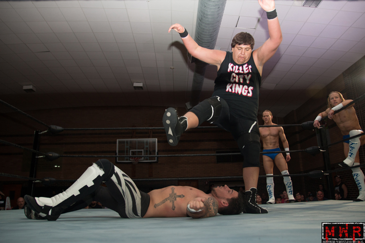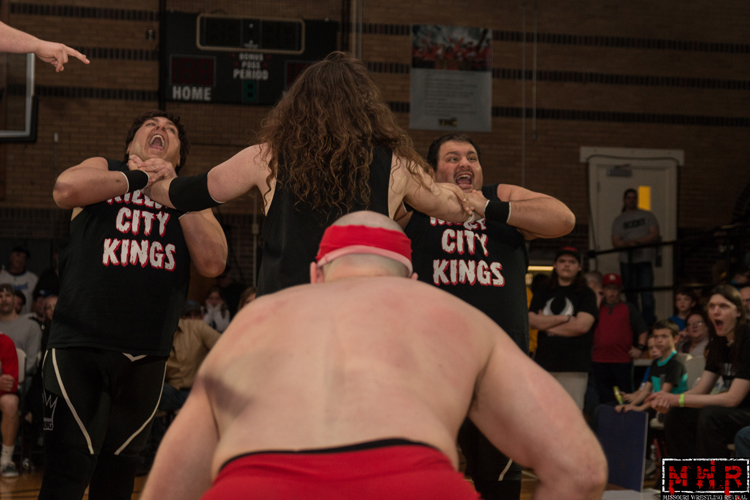 Jon Webb & The Riegel Twins (Logan & Sterling) defeated The King Brothers (Jake & Ryan) & Mike Sydal