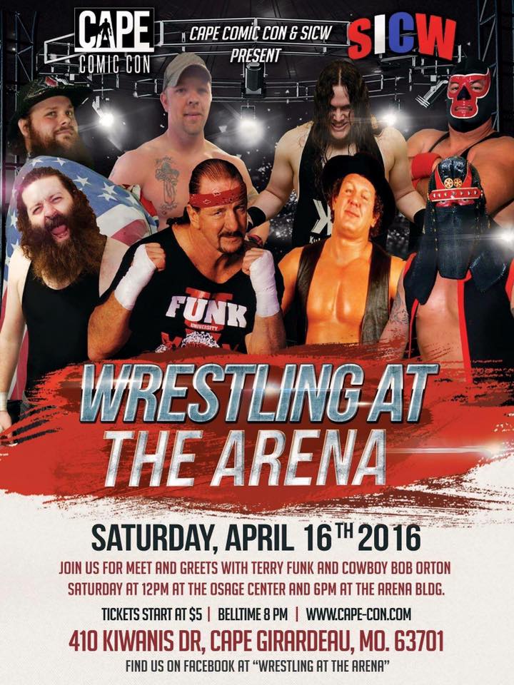 So I arranged to move our monthly Saturday night event to a Friday to help accommodate the Cape show. And as you can figure we were all ready for the Friday night action, Terry Funk, Cowboy Bob Orton, Larry Matysik and all the SICW stars were ready, the capacity crowd was fired up, we were ready for some good old WRESTLING or RASSLIN.