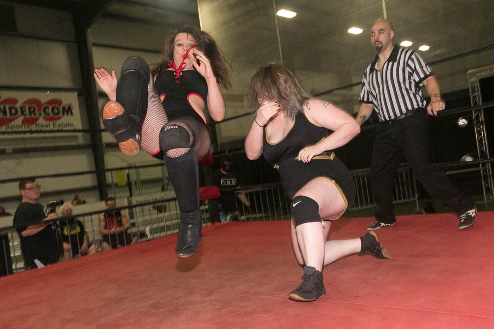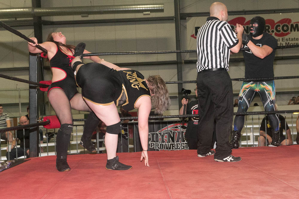 –”The Empress Of Evil” Rahne Victoria d. Sophie King(w/ The Snitch) after a spinebuster to retain the Women’s Title (8:45).