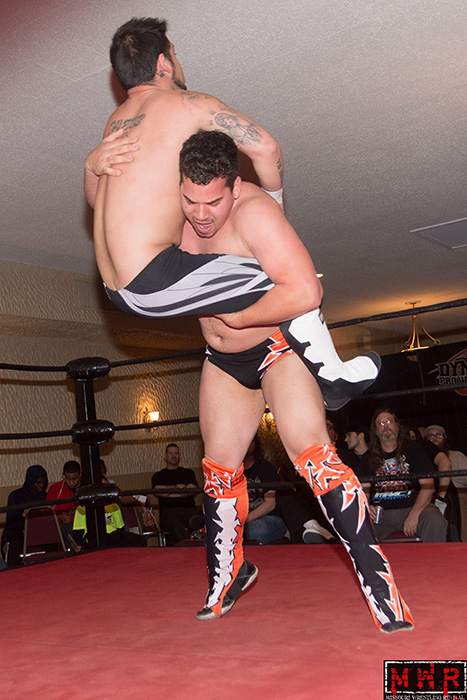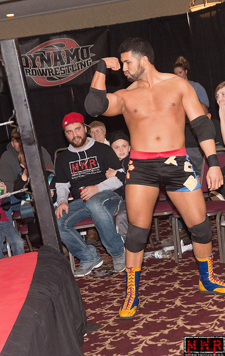 That is what happened last night when MWR was on hand to cover the exciting double main event in Alton, Illinois for Dynamo Pro Wrestling as Michael Elgin challenged D-1 Champion Outtkast and DPW Champion Brandon Aarrons battled Elvis Aliaga at the Mineral Springs Mall in Alton, Illinois.