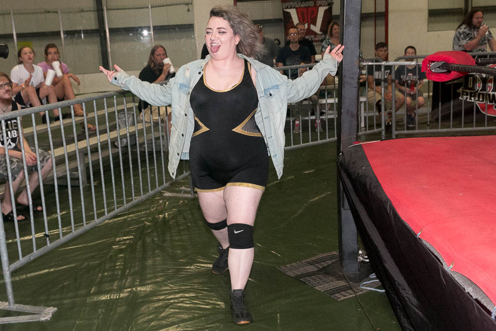 ”The Empress Of Evil” Rahne Victoria d. Sophie King(w/ The Snitch) after a spinebuster to retain the Women’s Title (8:45).