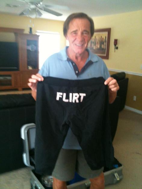 After one visit at TNT Keny G’s Dubray made the mistake of leaving her sweatpants that had the words Flirt printed on the back of them. This would not be a big deal at most homes, but Keny saw this as a way to rib Dubray in a way only he could. One day I received a call from Dubray telling me that Keny was in Florida visiting his family and had tagged some photos to her. Awesome, he wanted to share with us what a good time he was having.