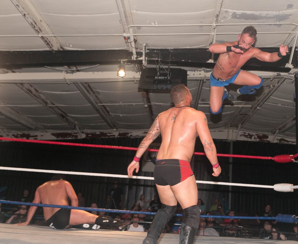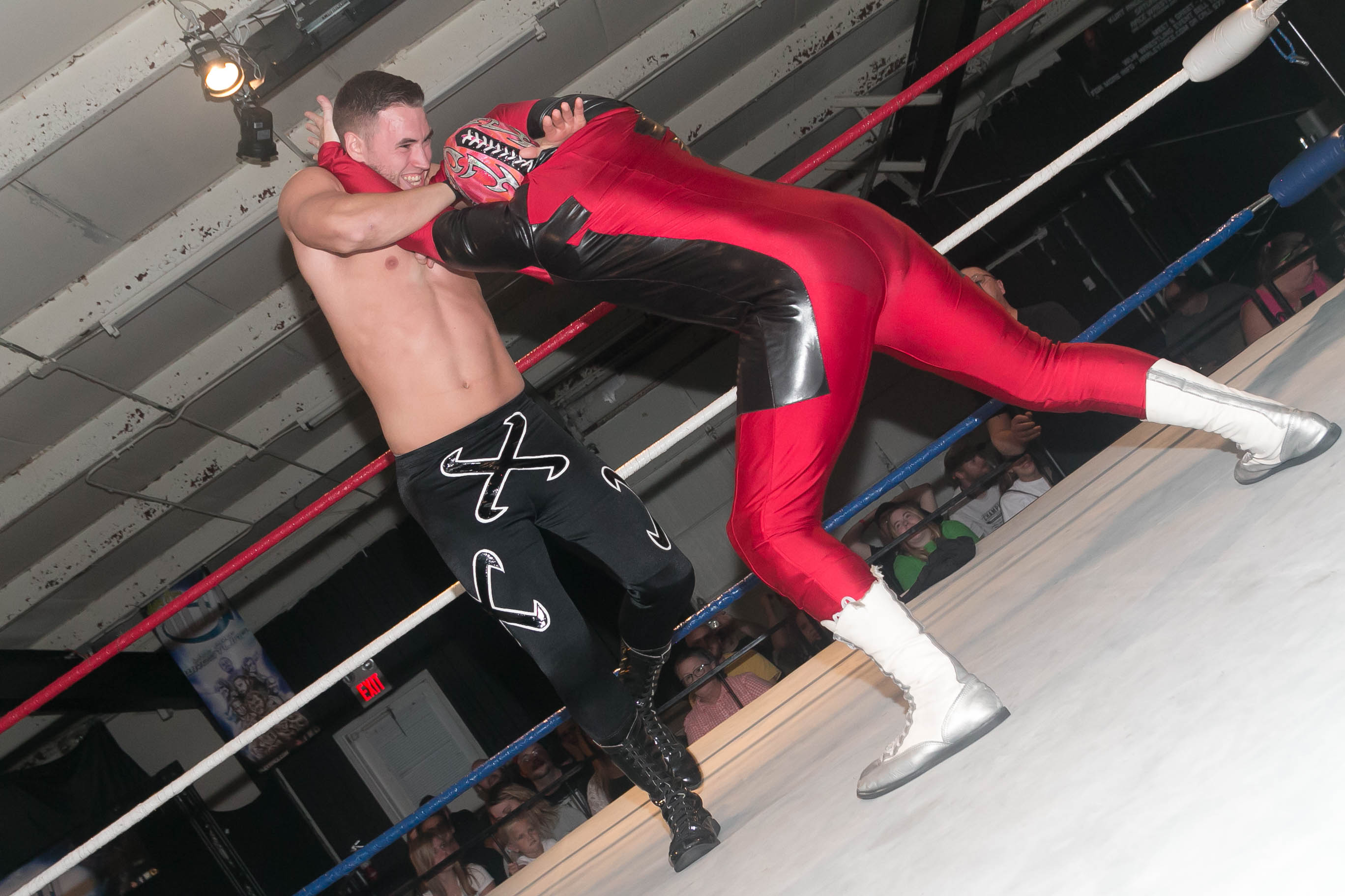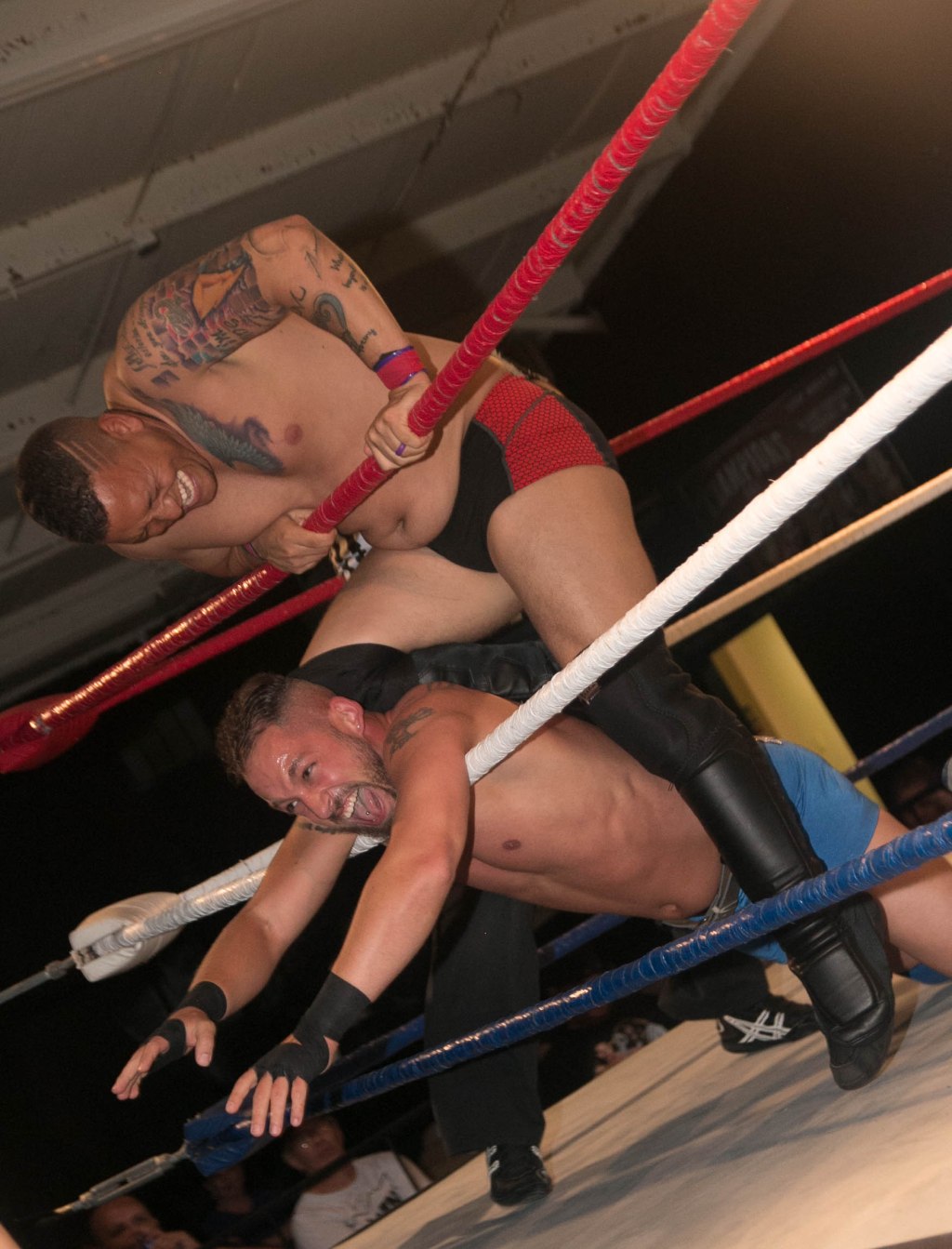 –Jayden Dominic Rose d. Jack Gamble in a strap match to retain the Jr. Heavyweight Title. Gamble nearly won, but Rose spit mist in Gamble’s eyes before tagging the four turnbuckles for the win (16:38).