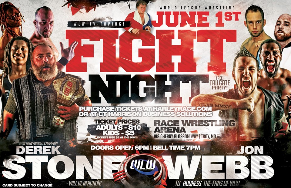 The next WLW TV Taping is going to be HUGE! The WLW Heavyweight Championship will be defended in the main event as Derek Stone challenges Jon Webb in what is the biggest challenge to Webb’s reign yet!