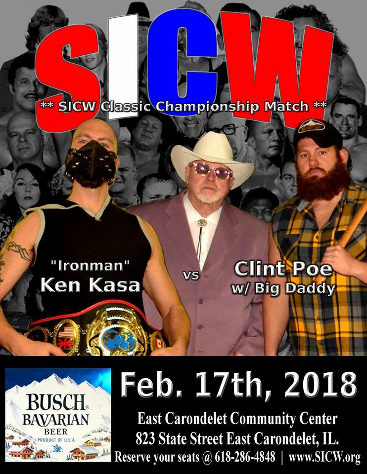 “Main Event” for Saturday October 21st in East Carondelet, Champion “Icon” Chris Hargas vs “Ironman” Ken Kasa for the SICW Classic Title. Plus big tag match, Big Troll and AX vs Flash Flanagan and Big Country Clint Poe. Plus the “Tokyo Monster” Kahagas returns to SICW. Also making their SICW Debut, Chief Attakullakulla and “The Beast”.