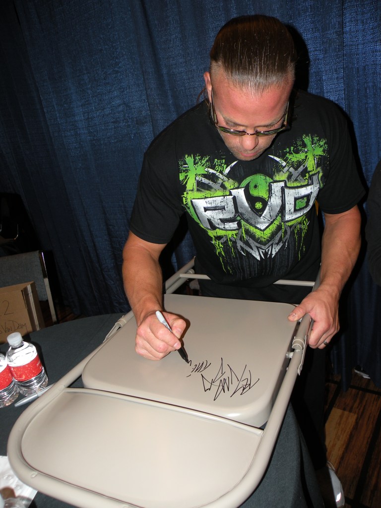 Kyle gets autographs from Jeff Hardy and Shannon Moore.