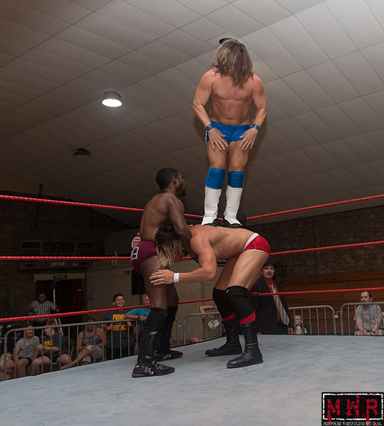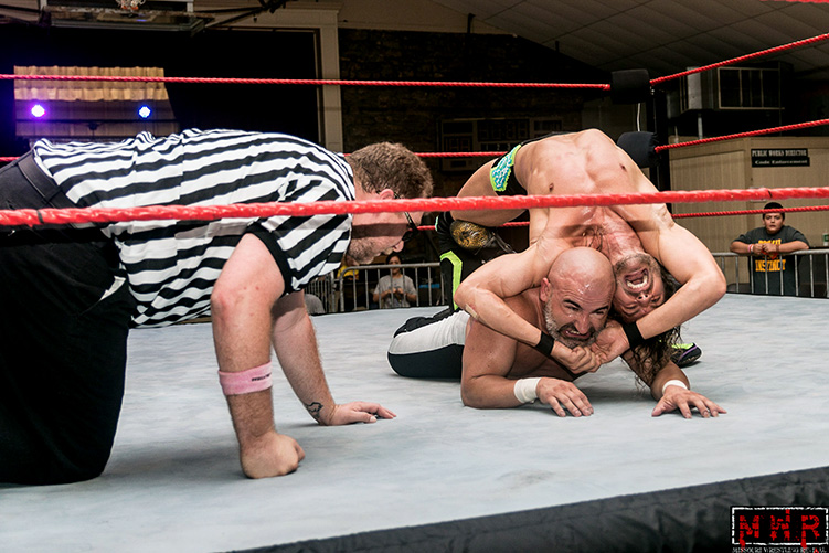 -“The Ace Of Anarchy” Davey Vega won a triple threat match with Gary Jay(w/ Dorian Victor & Mrs. Victor) and Mat Fitchett(C) to win the Heavyweight Title. Vega delivered his brainbuster onto the knee on Gary Jay, then hit the move on Fitchett as well and pinned the champion for the win (17:02)! Vega barely had time to celebrate his win as several competitors from the Kansas City side of the NWL attacked all three competitors; I saw Logan & Sterling Riegel), Jake & Ryan King, Kiyoshi Shizuka, and even Michael Strider!