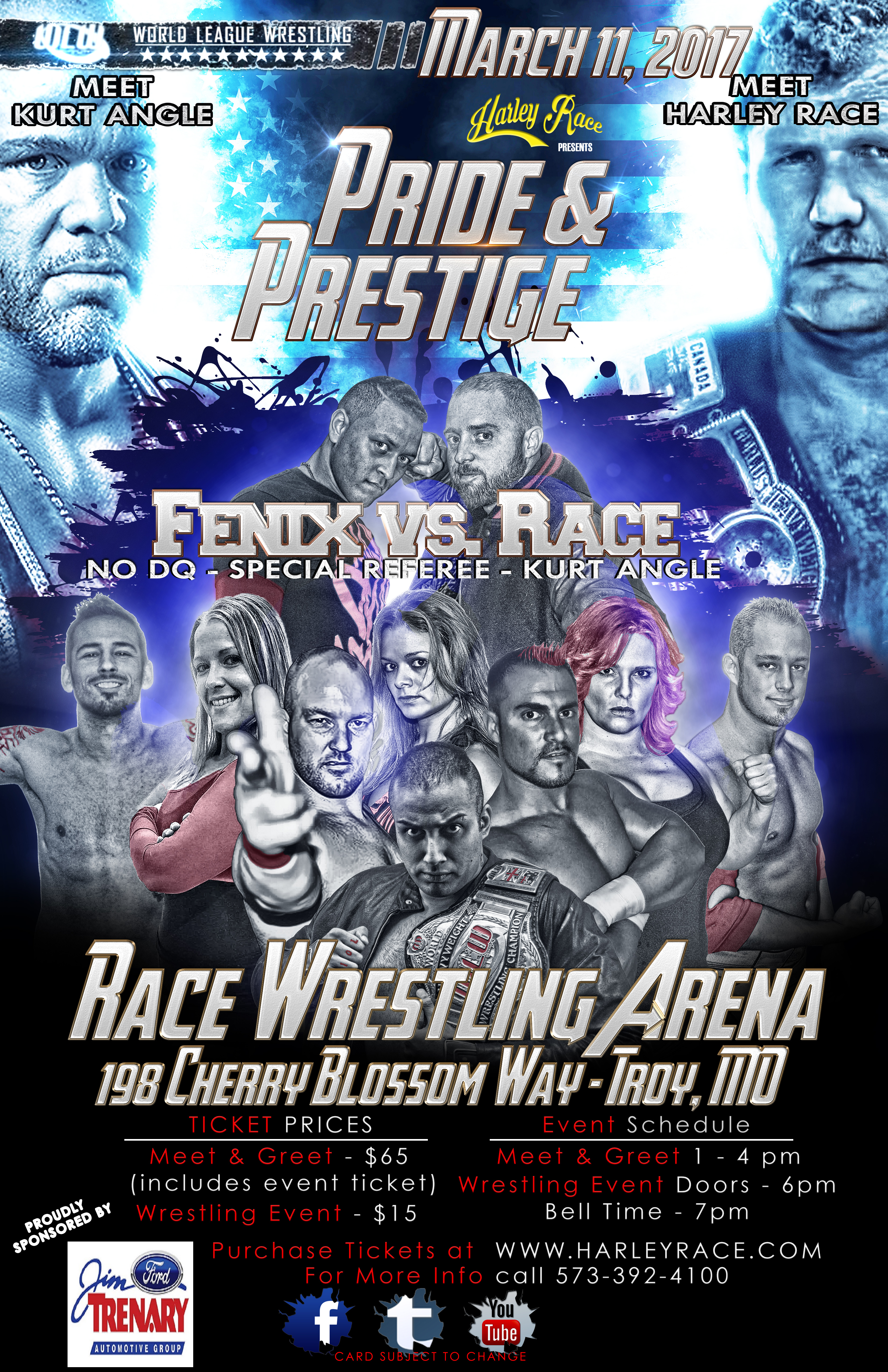 The day and night was filled with a Meet and Greet with Kurt Angle, and a packed night of wrestling so time restraints kept us from doing a presentation. In front of the SOLD OUT crowd.