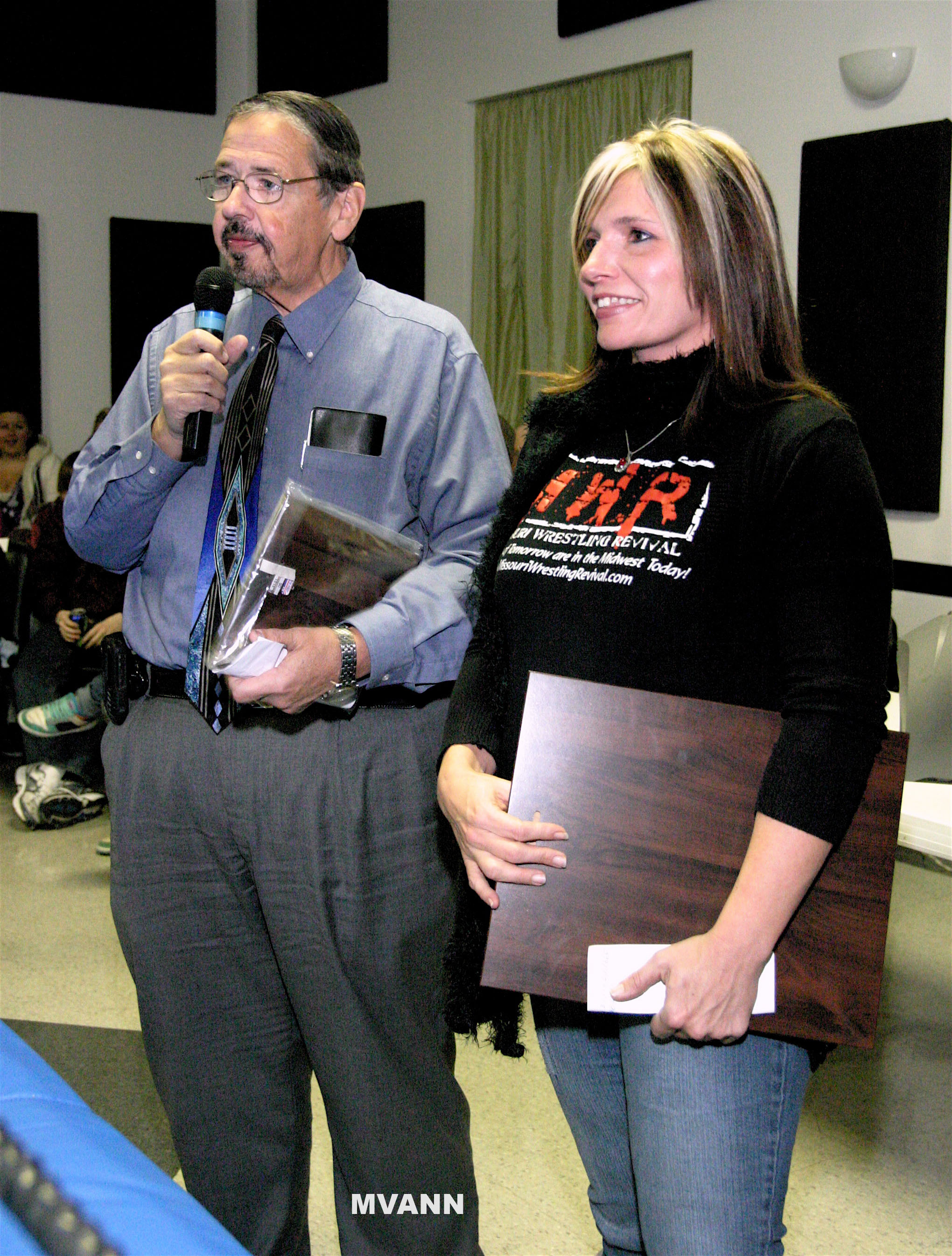 I have to apologize to Melissa Thurman, Melissa and her husband were two of the first people that I spoke to. They were very nice and I enjoyed getting to know them both. Jimmy was the wrestling fan but she was looking to have a good time. She quickly stated that she wanted her picture taken with Amy Hennig (Wise choice I may add) and just my luck I happen to have lost that photo. Her husband chose the man of the night Trevor Murdoch. Melissa I would like to make it up to you personally so if you would contact me at flairwhoooooo@yahoo.com and we will see if I can make amends.