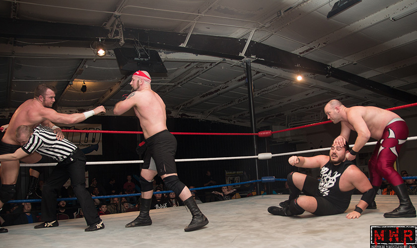 The post-match beatdown ensued…all three Black Hand Warriors ran in to brawl with Murdoch and company, but they got the worst of the exchange and were a bit dinged up heading into their matches later in the night.