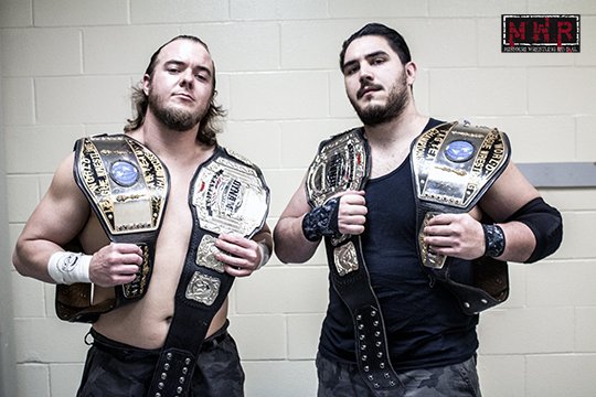 Elite Aggression (Superstar Steve Fender & “The Fittest Wrestler On Earth” Mark Sterling)(w/ Trevor Murdoch) vs. The Black Hand Warriors (Michael Magnuson & Dave DeLorean) for the Tag Team Titles: This feud stemmed from Fender and Dangerous Derek McQuinn cashing in Fender’s Harley Race Invitational Tournament opportunity after DeLorean and Jayden Fenix had won a four-team tournament for the vacant tag titles; Fender & McQuinn defeated the worn-down champions for the belts immediately after the tourney final. McQuinn suffered a recent injury and Sterling was allowed to substitute as Fender’s tag partner; I had honestly forgotten that Fender & Sterling had been Tag Champs in their own right in the past. Magnuson only recently returned to action, reuniting the original Black Hand Warriors tandem for this grudge match.