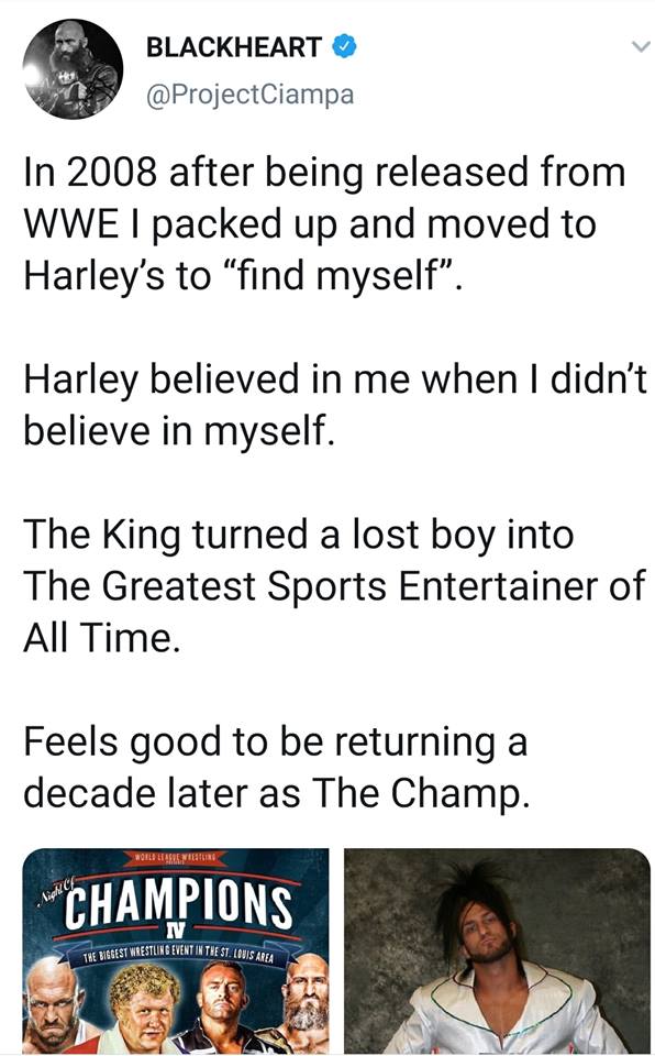 Tickets are still on sale at nightofchampions.harleyrace.com right now. If you purchased Ciampa Meet and Greets and want to exchange it for Adam Cole Meet and Greets, don’t worry. We are more than happy to exchange it with no transactions needed!