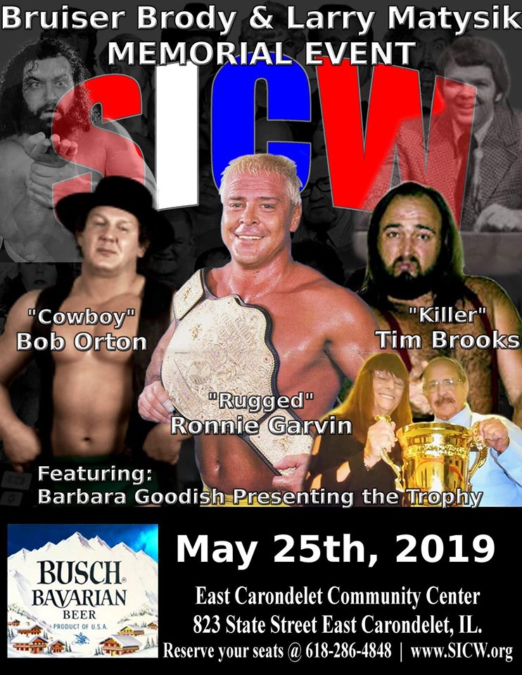 This Saturday May 25th at the East Carondelet Illinois community center former SICW CHAMPION and local WRESTLING legend will be back in the ring as a “Special Guest” referee for the “Main Event” when Champion Superstar Steve Fender defends the title against “The King of Chaos” Ricky Cruz. This is all part of the 60th year anniversary of the history of WRESTLING at the chase along with the Bruiser Brody and Larry Matysik Memorial.