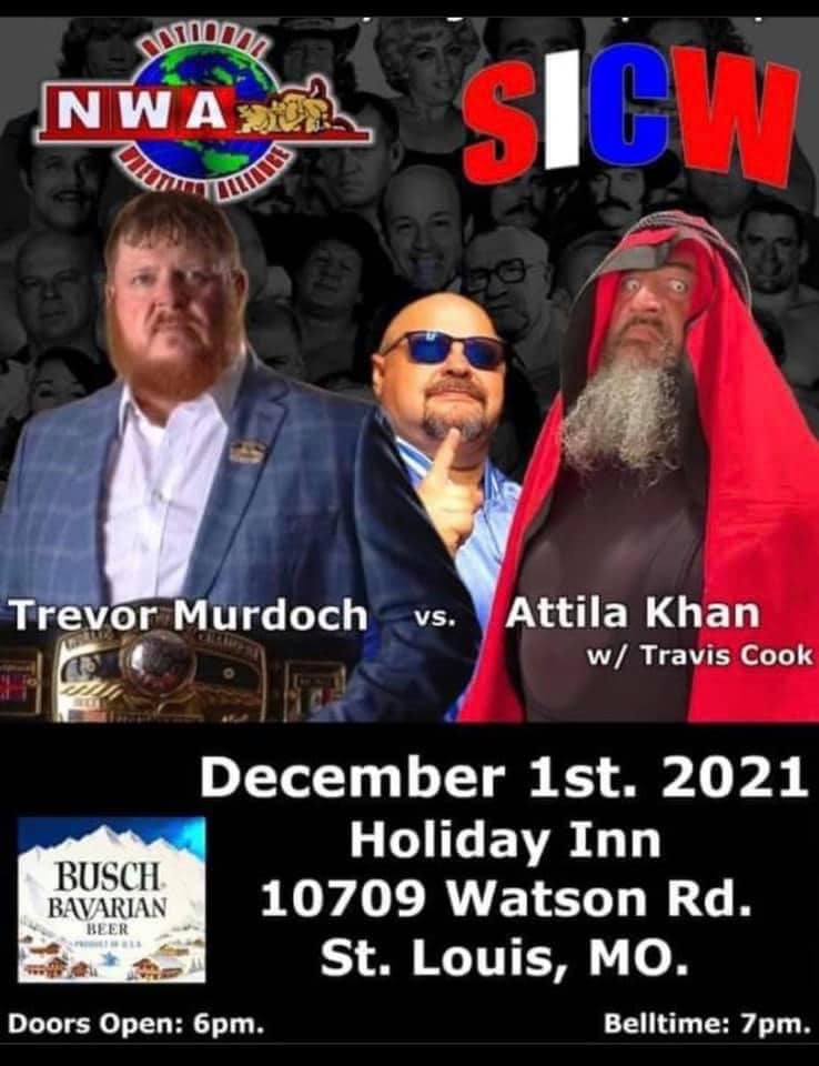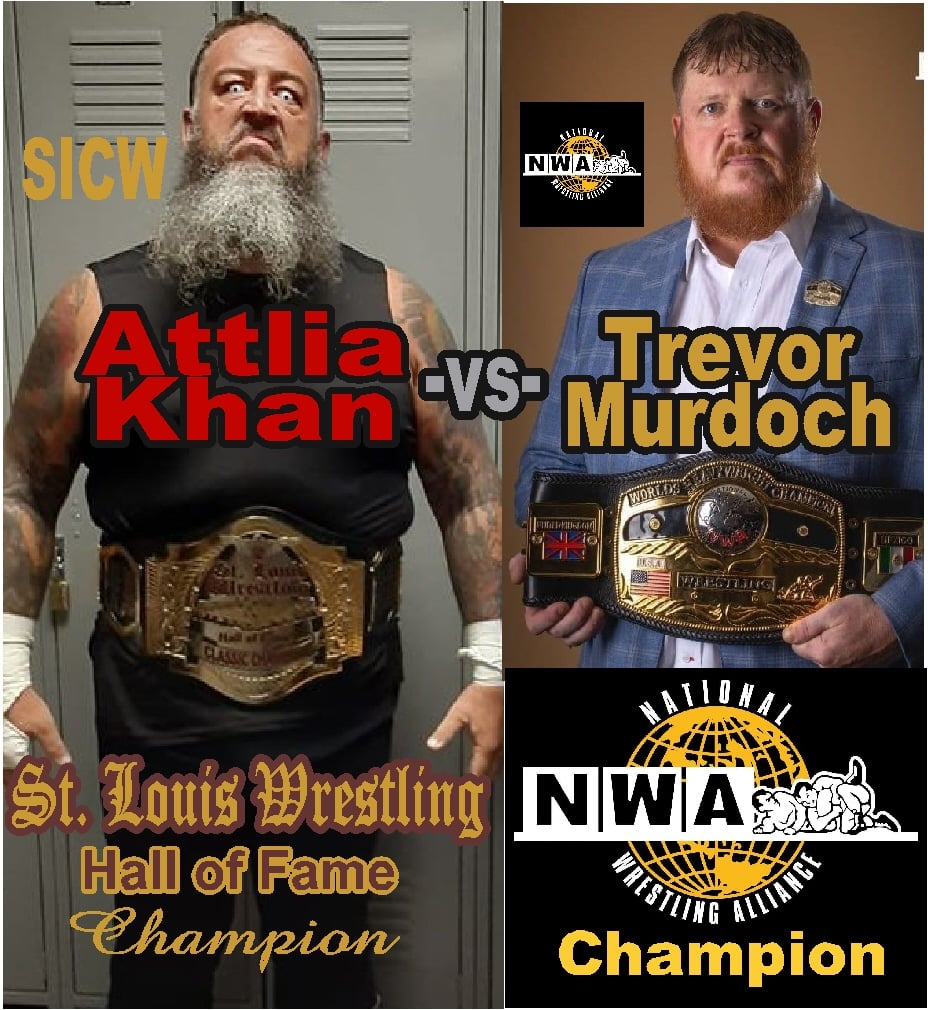 A title defense of your worlds heavyweight champion: NWA Heavyweight champion: Trevor Murdoch vs SICW Classics champion: Attila Khan w/ Travis Cook. Tickets are going fast but still available!