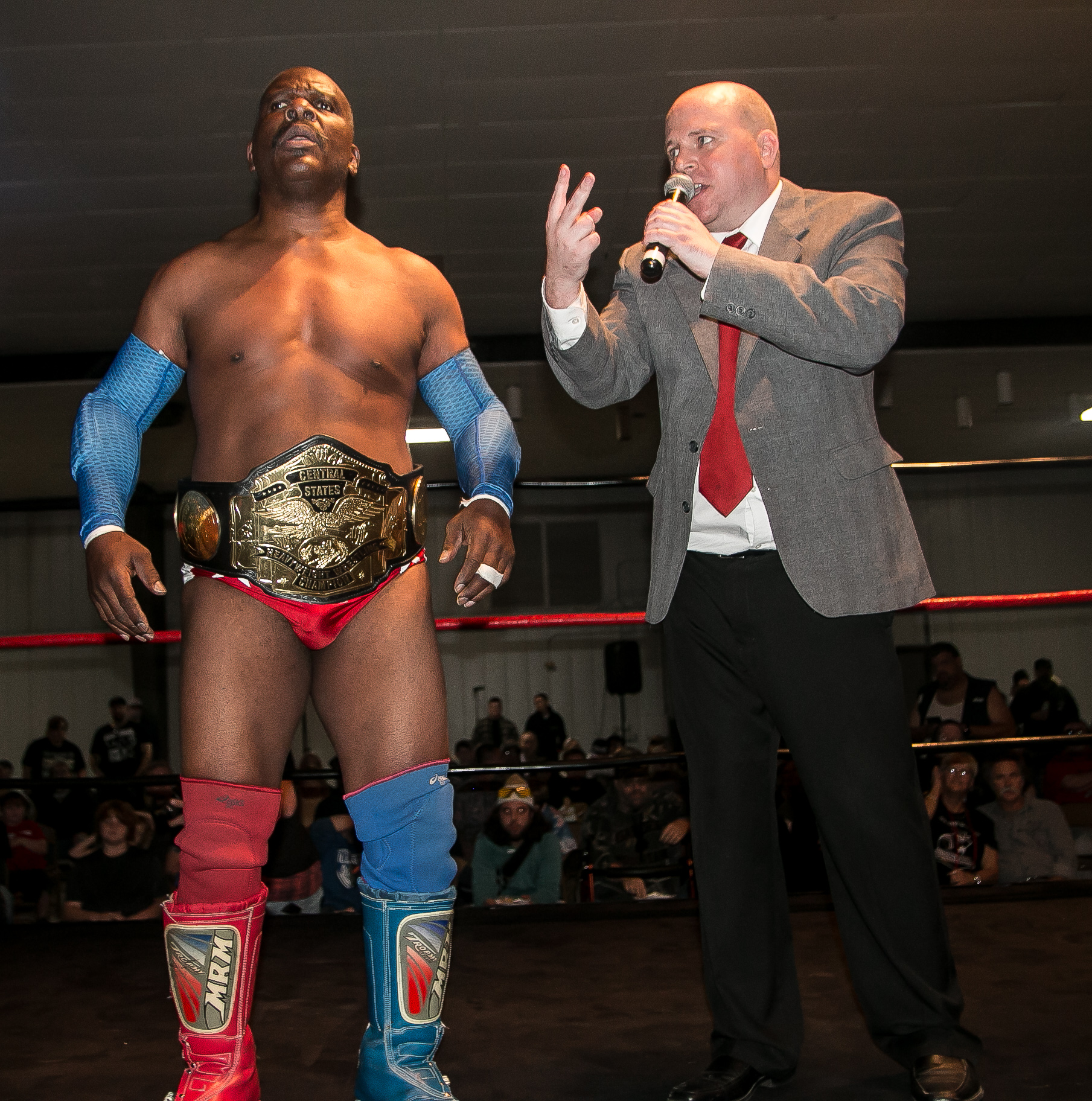 Trevor Murdoch, the NWA Champion announcing he’s returning to St.Louis on December 1st to defend the NWA title against the International Bounty Hunter, Attila Khan at the Holiday Inn at 10709 Watson Road St.Louis.