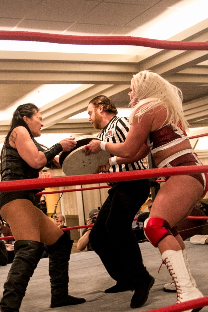 The Badstreet Beauty” Miranda Gordy vs. “The Modern-Day Moolah” Malia Hosaka ended in a double DQ.