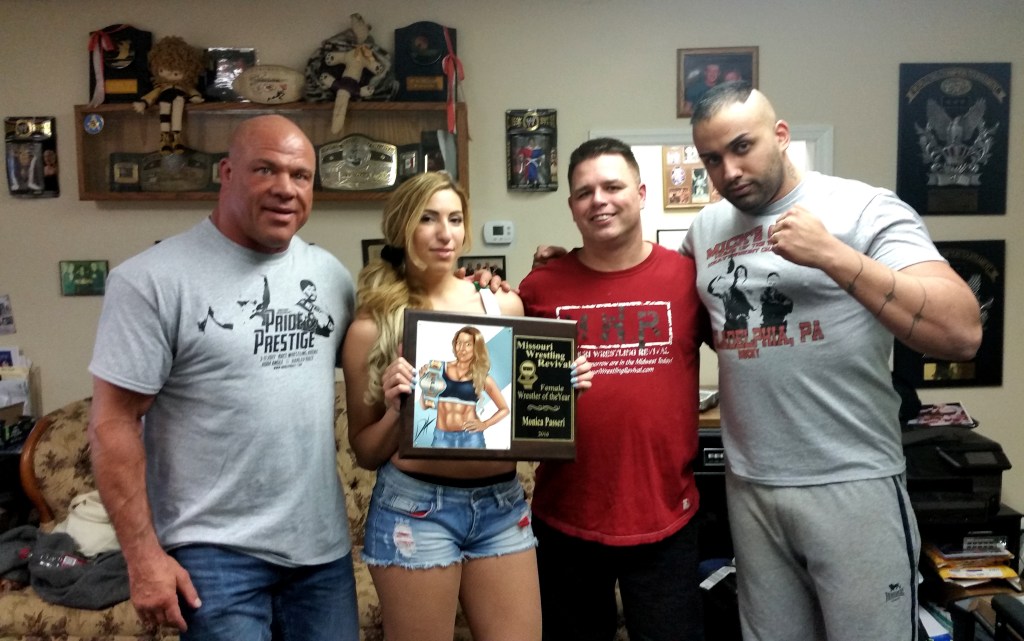 Missouri Wrestling Revival was very excited to present Italy’s very own Miss Monica with the 2016 MWR Female of the Year plaque at World League Wrestling’s Night of Champions 2. Miss Monica and her partner in crime the current WLW Heavyweight Champion Karim Brigante has had six tours of the USA to come to train under the tutelage of Harley Race at his World League Wrestling promotion.