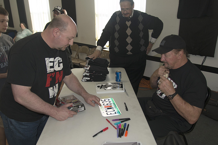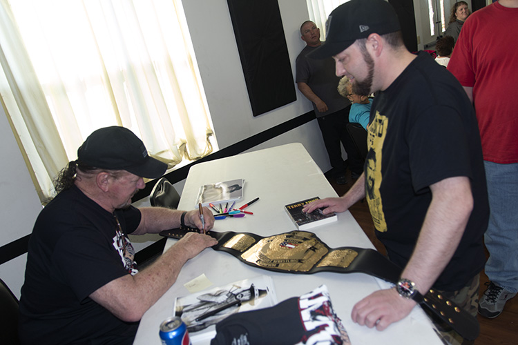 We had posted the importance of Kevin Von Erich coming to the Midwest prior to the show at MWR but little did we know how friendly the man was. All night long he posed for photos giving the fans the famed Von Erich Claw and signing autographs.