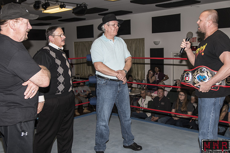 So, as during the history of this crazy business we call WRESTLING or RASSLIN, we went to a plan B, yes Plan B that in a matter of a few minutes it was determined that instead of naming the winner of the “Terry Funk Title Tournament” the number one contender, the winner would become the SICW All-Star Champion. Simple right, you got it, the event went on and the action was great as always. The new champion was named, Ron Powers recaptured the gold and the celebration with him, Terry Funk and Cowboy Bob Orton took place in the ring.