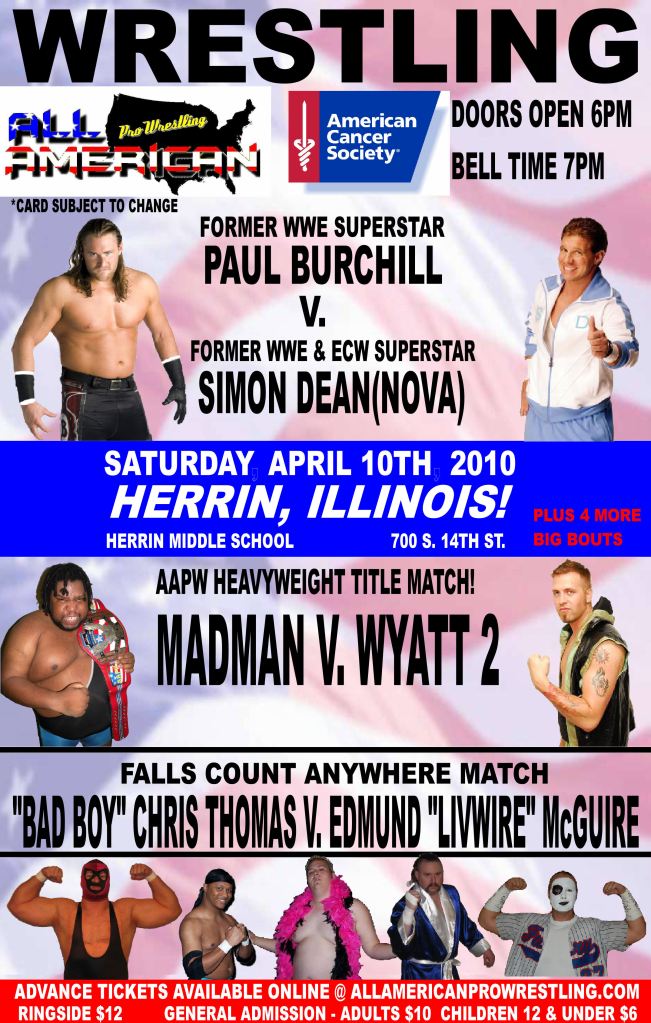 As of press time AAPW is set to bring to the Midwest WWE’S Jerry Lawler and Kevin Thorn and more AAPW matches at RENT ONE Park on May 22 in prior to a minor league baseball game. AAPW has also brought in TNA’S Andy Douglas and WWE/ECW’S Simon Dean…. We can all look forward to McGuire vs. Rich in the second half of the year.