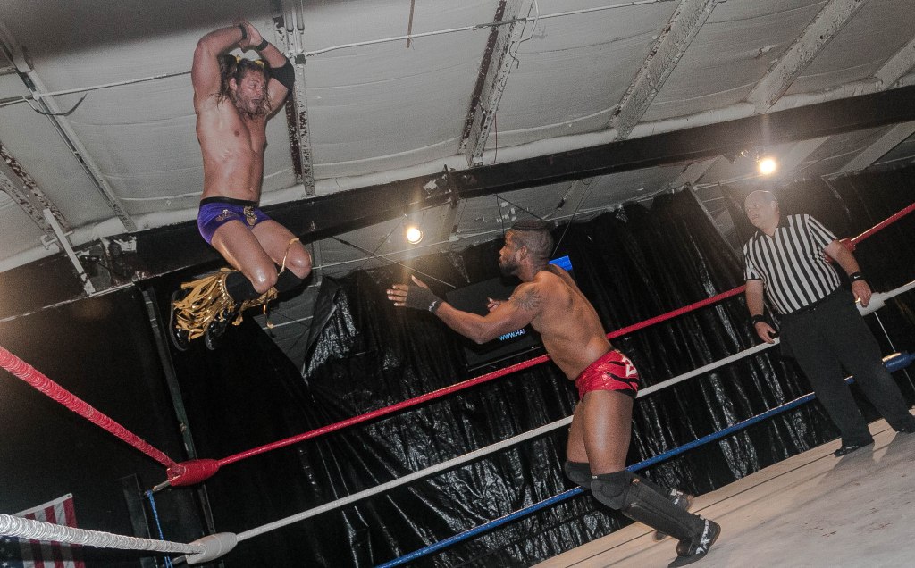 His family and friends helped with the concession stand and were all decked out with branded tees, and the night’s action delivered shocking surprises with stars from around the Midwest and his home state of Florida. His special guest was former Wrestling at the Chase announcer Larry Matysik. Keny respected and loved wrestling so much that he knew that having Matysik in the house brought legitimacy to HVW. Keny himself was dressed to the nines, and thanked everyone for coming. I was impressed, to say the least.